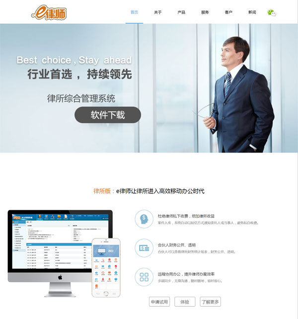 e律師技術團隊開發的律師事務辦公管理系統,與眾多律師事務所共同協作,在各位律師精英的大力支持下,經一年多的試運營,律師事務辦公管理系統命名為“e律師”律所綜合管理系統,同時,e律師官網正式上線,網址:www.110jk.cn。