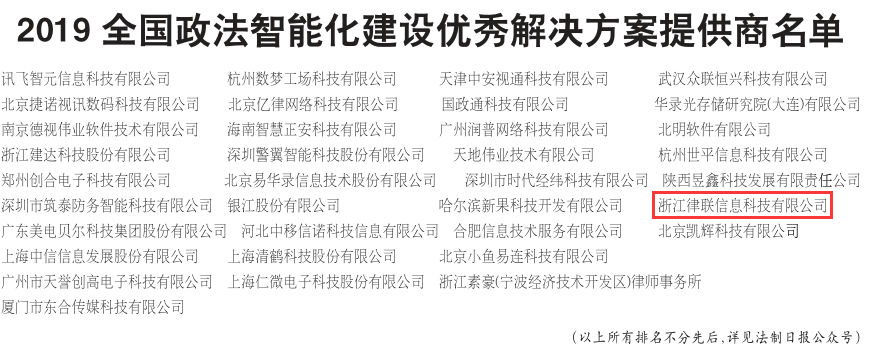 6月12日,2019全國政法智能化建設創新案例征集活動結果揭曉,評審出雪亮工程、智慧法院、智慧檢務、智慧警務、智慧司法十大創新案例、十大解決方案提供商及十大創新產品。